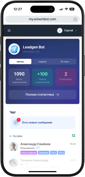 WinWinBot берёт на себя рутину: отвечает клиентам, прогревает их и продаёт ваши услуги. Никаких потерянных заявок, человеческих ошибок и ручной переписки. Продуманная автоматизация — это новый уровень сервиса и развития вашего бизнеса.